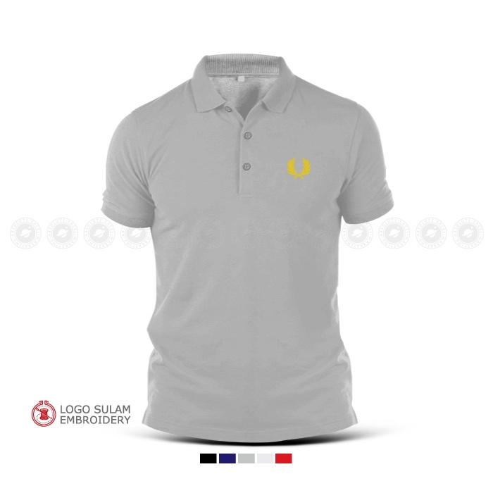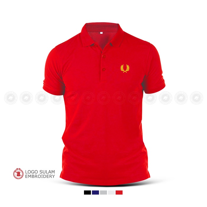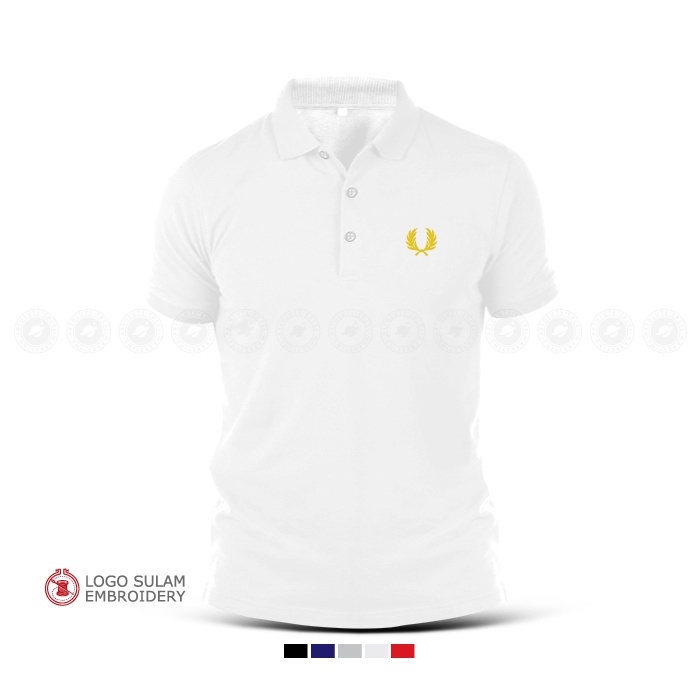 Polo T-Shirt Sulam Freds Perrys Design Logo Emas Gold Baju Lelaki Cotton Embroider Fashion Baju Lelaki Streetwear