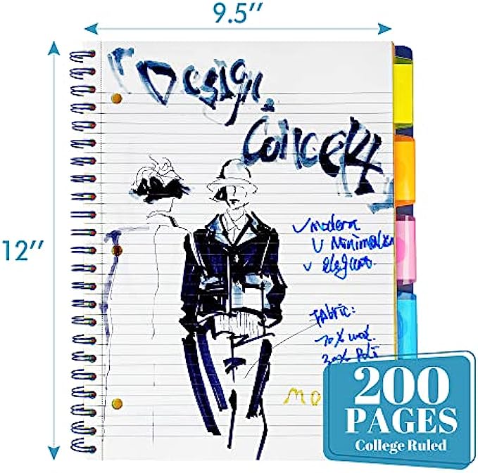 • HEAVY DUTY 5 SUBJECT NOTEBOOKS : torn out paper size: 8.1" x 11.7"(A4), 3 holed punched. Large overall size of 9.5" x 12". Strong Twin-Wire Binding keeps pieces of paper securely fastened organized and provides a flat writing surface.